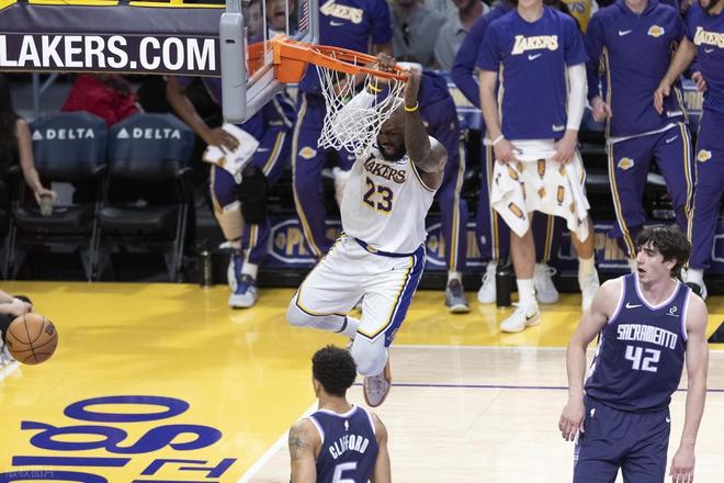 北京时间3月2日,NBA常规赛继续进行,湖人坐镇主场迎来与国王的比赛。上场比赛,湖人大胜勇士,结束3连败,战绩35胜24负位列西部第四。湖人近期状态一般,接连输给绿军、魔术、太阳,不过打勇士的比赛,湖人三巨头集体发威,詹姆斯半场就轰下20分,就此他超越乔丹成为NBA半场轰进20分且3分命中率100%的最年长球员。而东契奇也在第三节接管比赛,加上里夫斯高效拿到18分,替补席的拉拉维亚和肯纳德也表现出色,最终湖人大胜止血颓势。