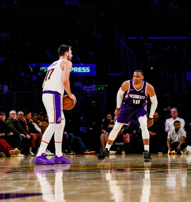 比赛开打之后,东契奇面对运动能力已经无法和巅峰期相提并论的威少,进攻端可以说怎么打怎么有,前两节靠着6投3中的三分球,砍下了15分和8次助攻,尽管勒布朗詹姆斯状态低迷,半场只有7中2的发挥,但是艾顿和里夫斯早早得分上双,帮助湖人带着15分的优势,回到了中场更衣室。