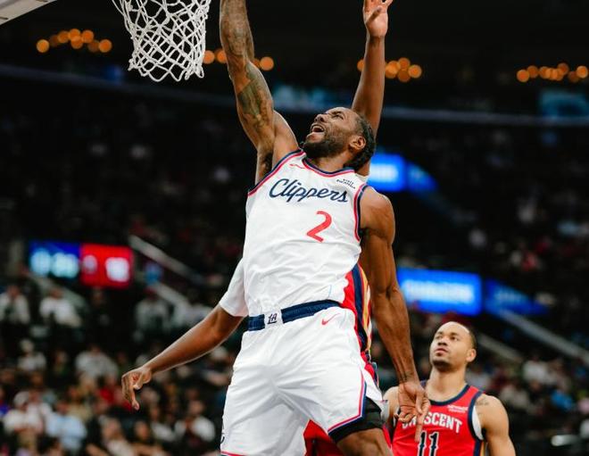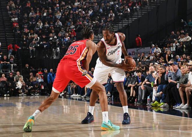 重新回到赛场之后,莱昂纳德依旧是快船最稳定的终结点,在三分球手感不佳7次出手只有1次命中的情况下,靠着无解的机器人中投,贡献了23分、3个篮板、5次助攻和1次抢断的全面个人数据,连续37场得分20+,位列快船队史第三位。