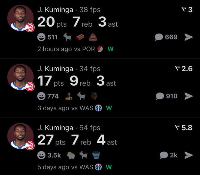 而这也是库明加交易截止日离开勇士加盟老鹰队傲人表现的缩影,加盟老鹰至今3场比赛,库明加合砍64+23+10全能数据。
